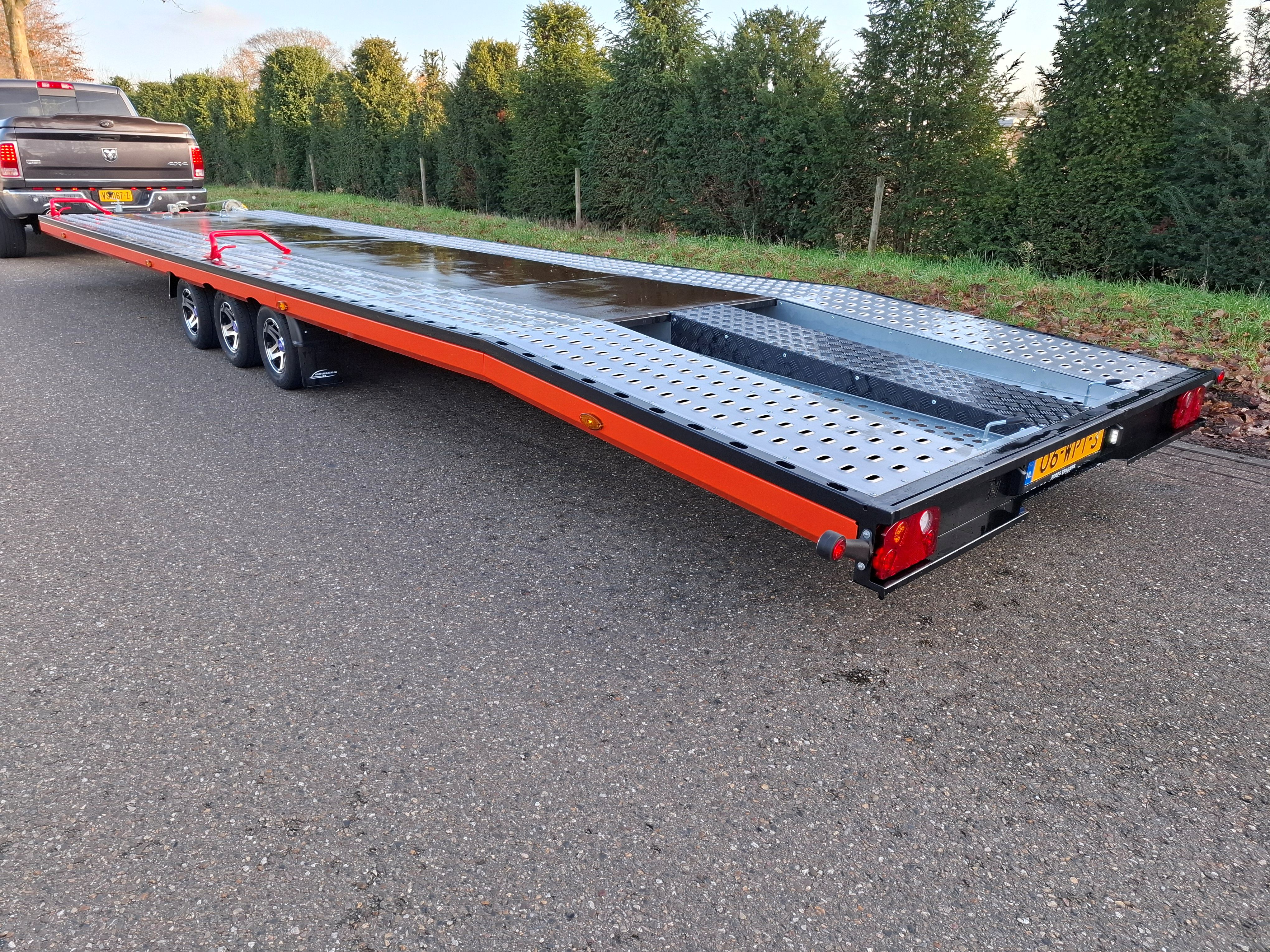 Door de afgeschuinde achterkant in combinatie met de lange oprijplaten kun je auto’s laden zonder zorgen. Voorin de trailer is een opbergluik voorzien. Aanhangwagen ligt strak achter de auto. Er is makkelijker te rijden met deze lengte dan je van te vorenverwacht.Ook leverbaar in 800 en 900cm lang en tot 250cm breed. Prijs op aanvraag