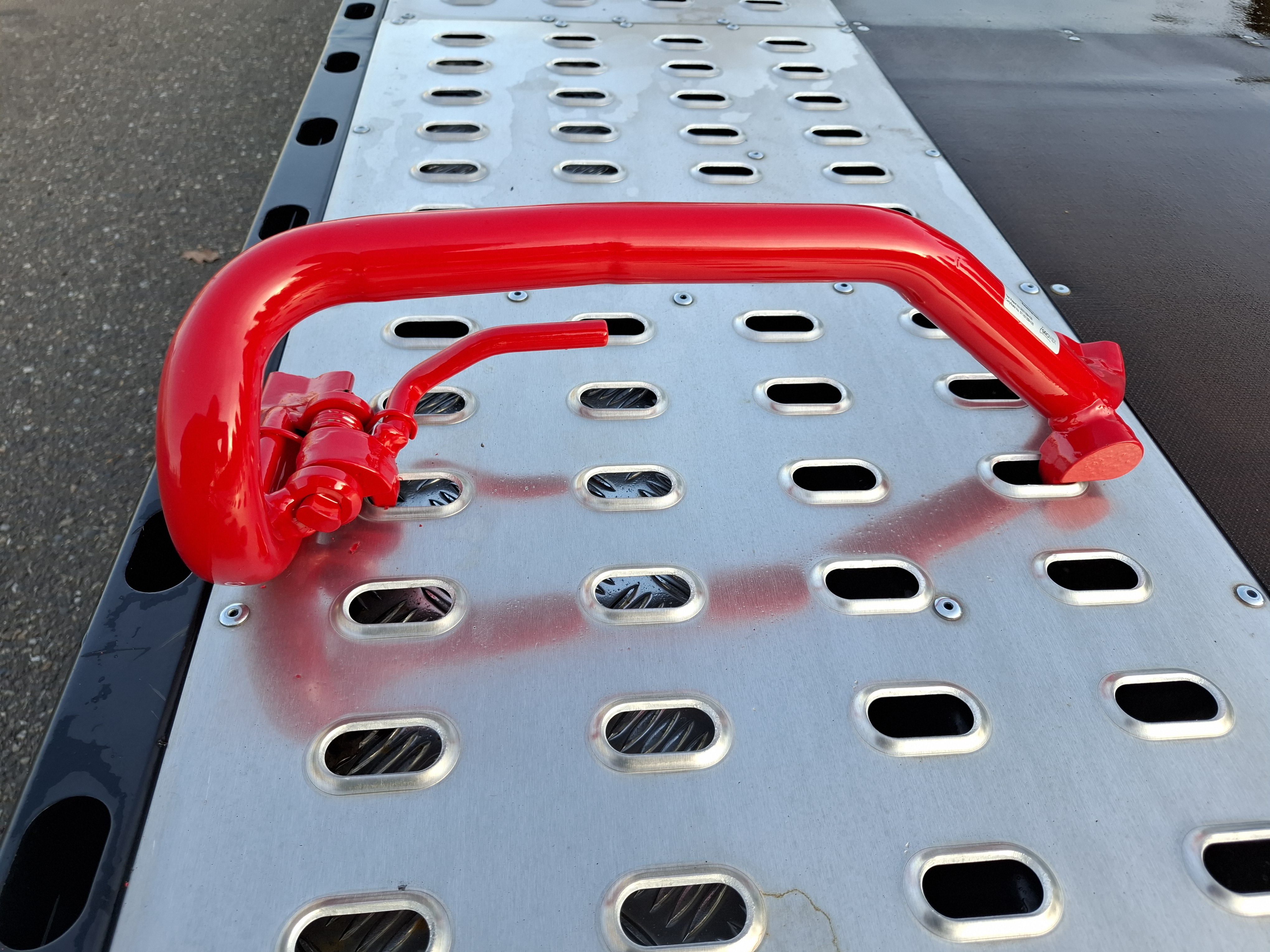 De ultieme auto-ambulance voor twee auto's. Voorzien van mooi spuitwerk en aluminium velgen. 850x210 3500kg.