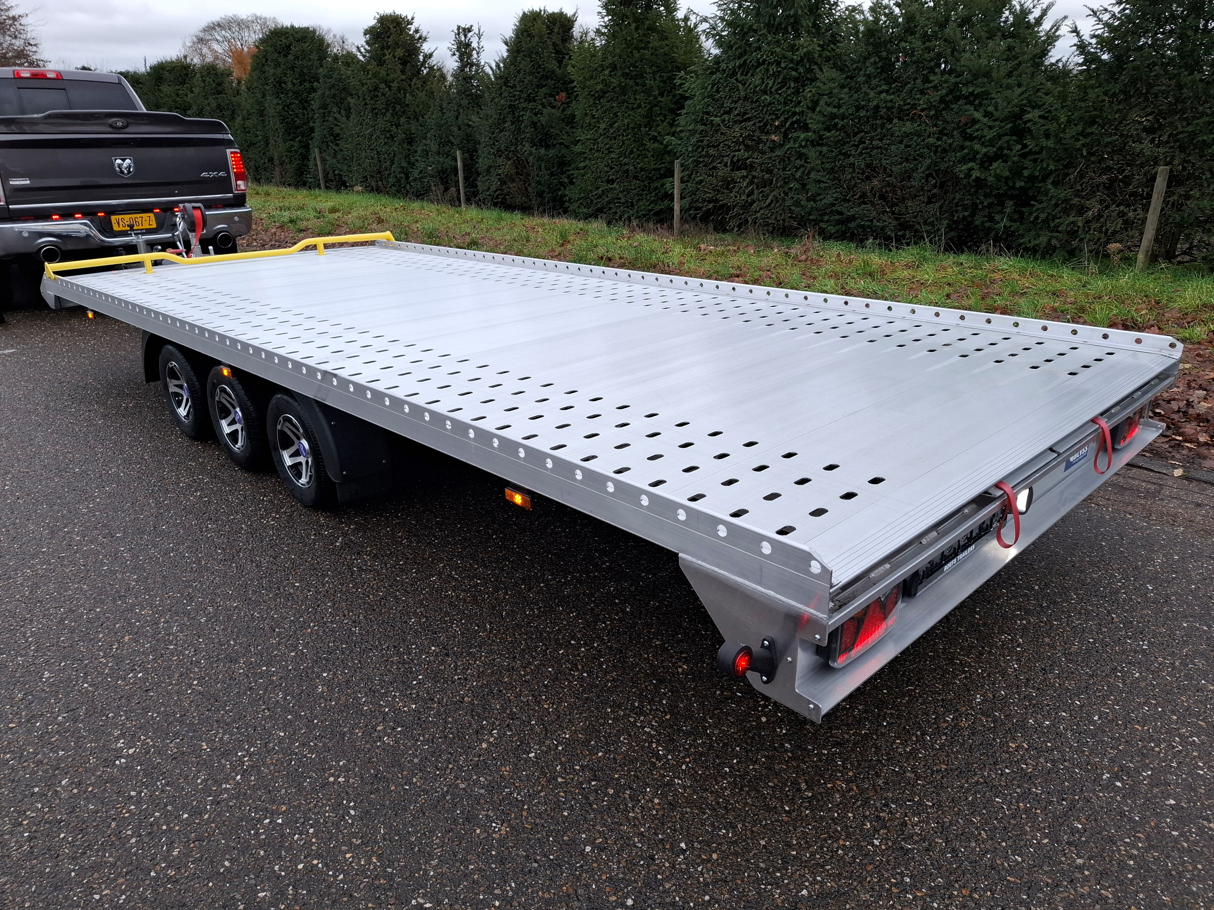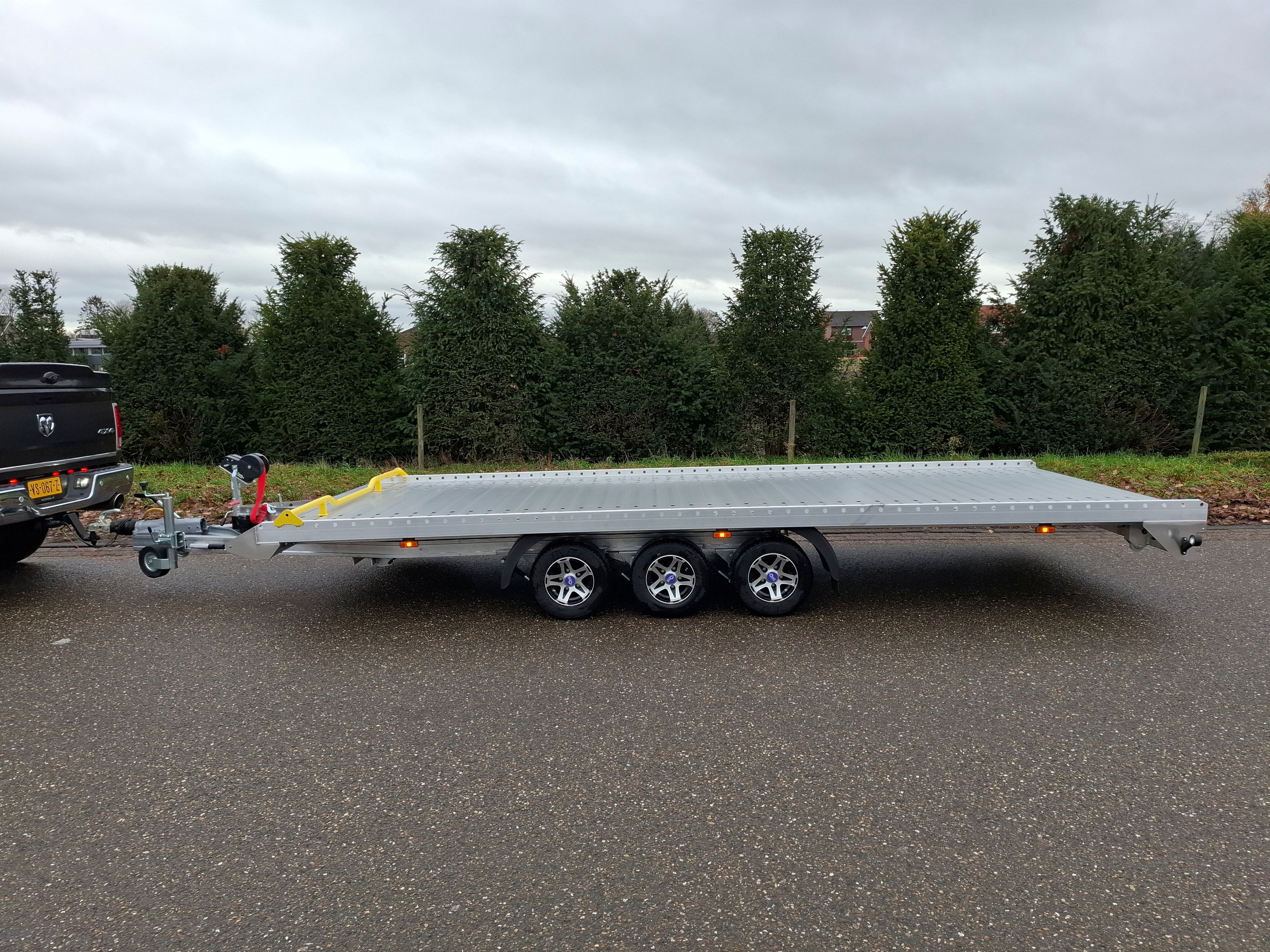 Door zijn kleine 10” velgen i.c.m. met de lange oprijplaten en het kipp-mechanisme kunnen zelfs lage sportauto’s de aanhangwagen opgereden worden (8 graden)