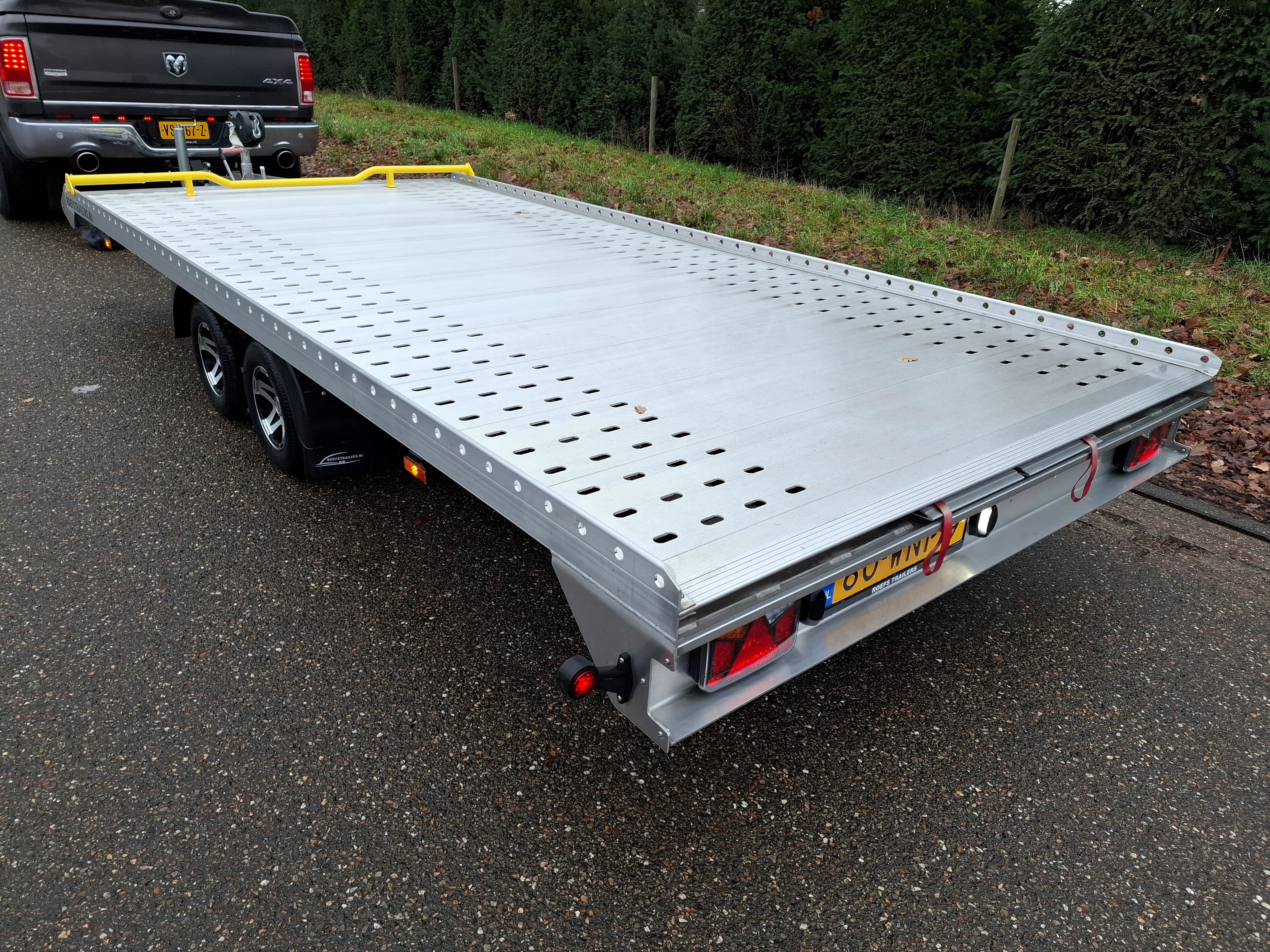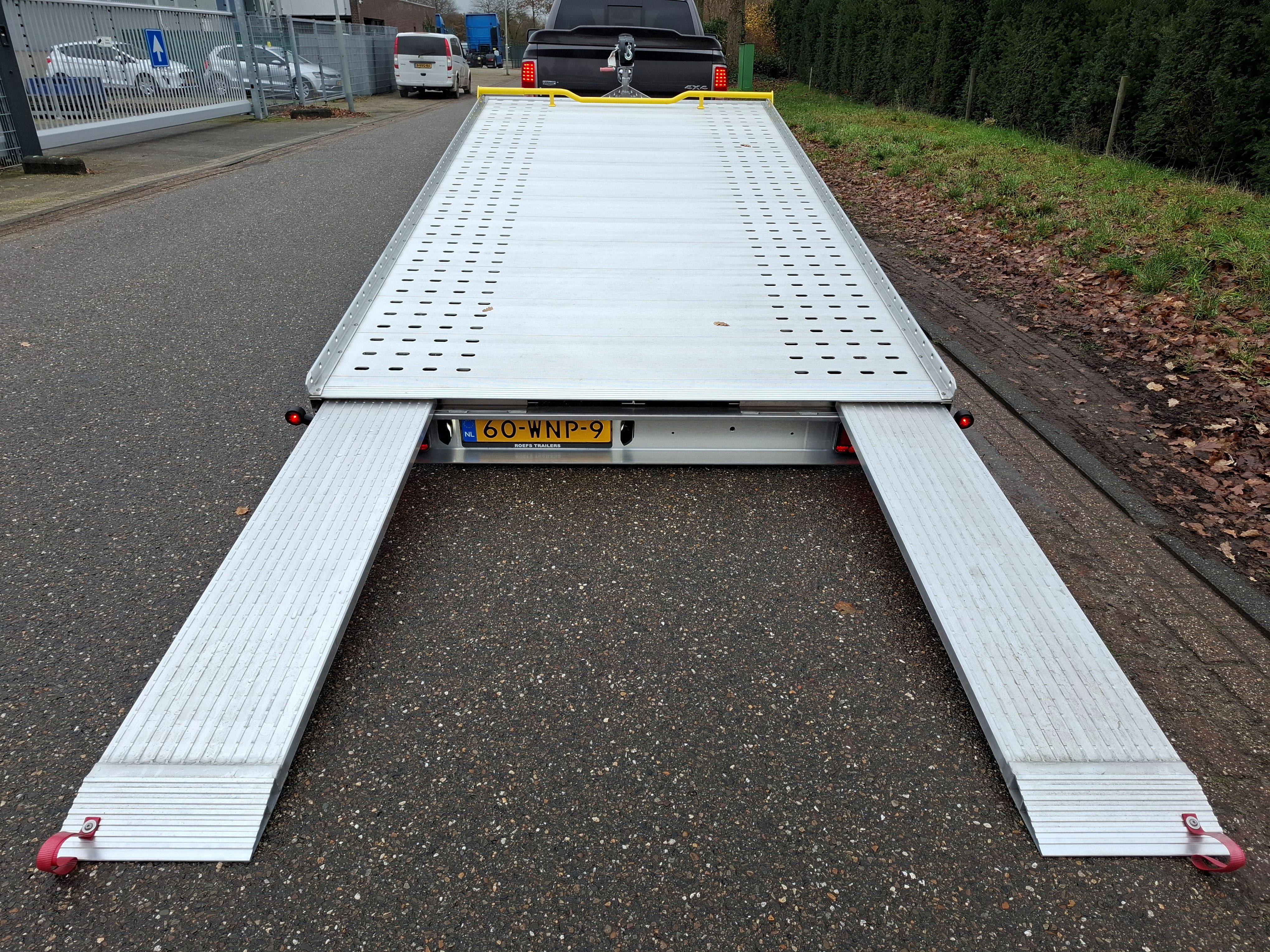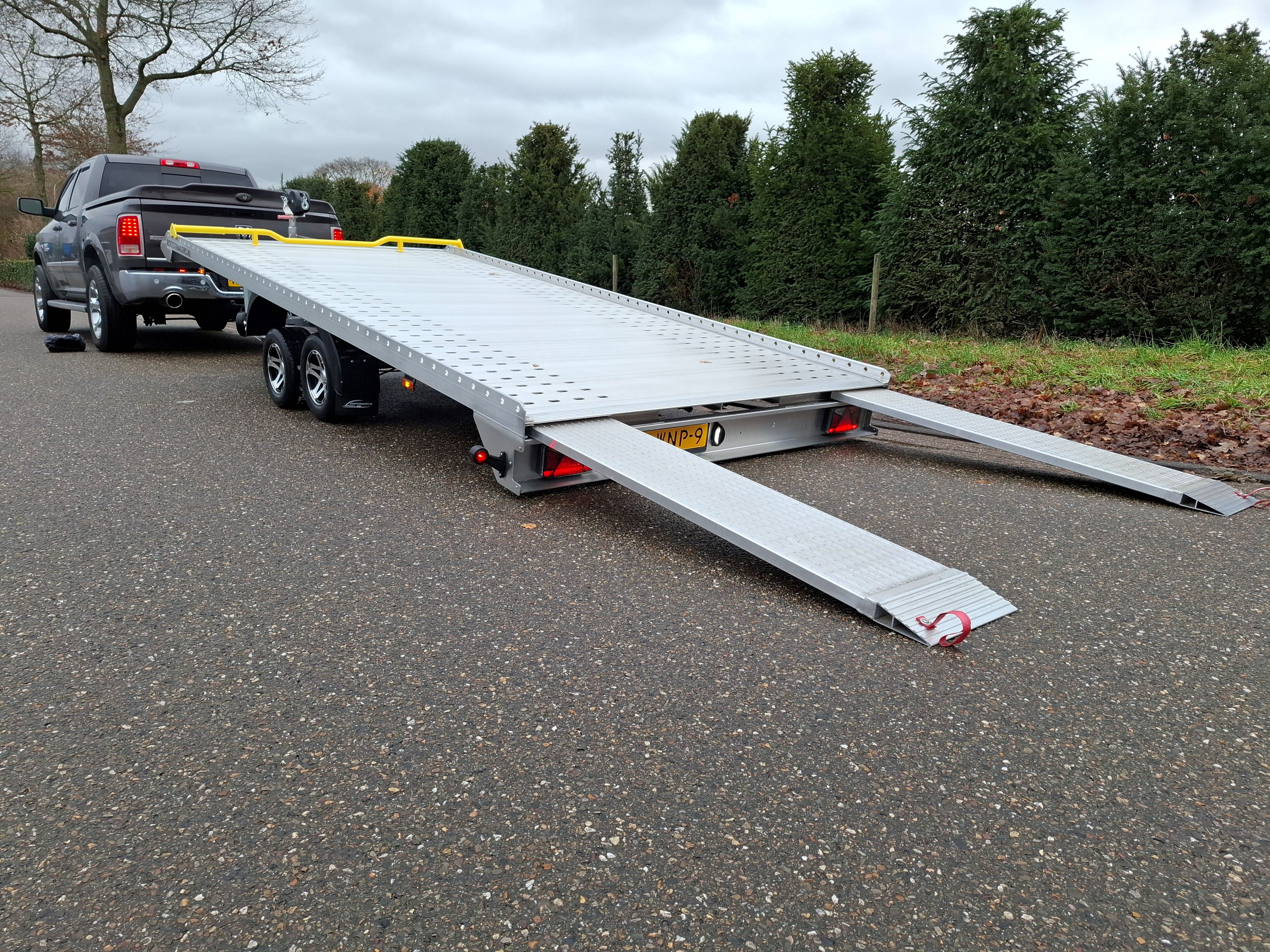 Door zijn kleine 10” velgen i.c.m. met de lange oprijplaten en het kipp-mechanisme kunnen zelfs lage sportauto’s de aanhangwagen opgereden worden (8 graden)